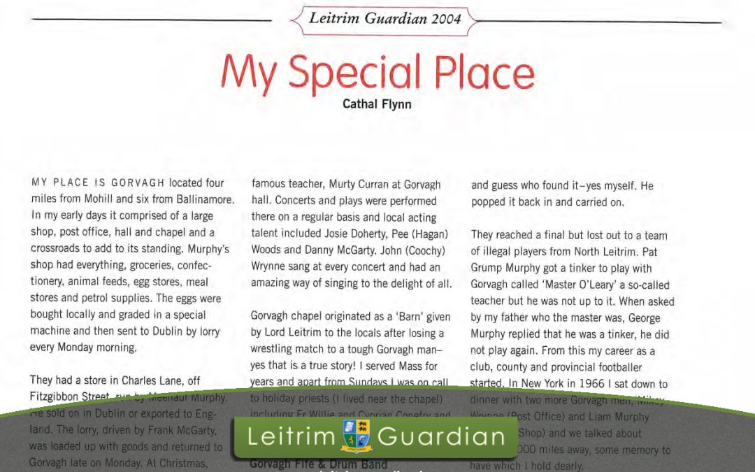 136 – My Special Place | LG2004 [Go Back] PDF File Type: pdf Categories: 2004 Tags: Heritage, Memories, Opinion Author: Cathal Flynn Downloads: 1