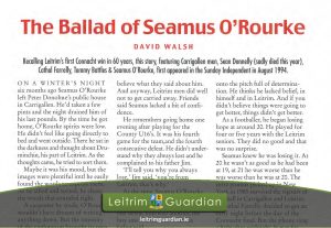 139 – The Ballad of Seamus O’Rourke | LG2000 [Go Back] PDF File Type: pdf Categories: 2000 Tags: Creative Writing, GAA, Reminiscence Author: David Walsh Downloads: 1