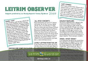 17 – Leitrim Observer 2069 | LG2019 [Go Back] PDF File Type: pdf Categories: 2019 Tags: Creative Writing, Excerpts, Humour, snippets Author: Tommy Óg Moran