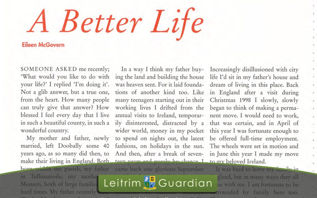 18 – A Better Life | LG2000 [Go Back] PDF File Type: pdf Categories: 2000 Tags: Emigration, Reminiscence Author: Eileen McGovern