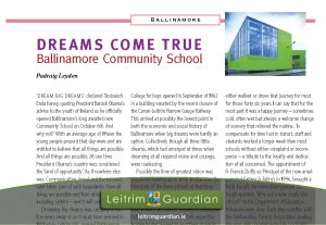 43 – DREAMS COME TRUE Ballinamore Community School | LG2015 [Go Back] PDF File Type: pdf Categories: 2015 Tags: Education, teaching, VEC Author: Padraig Leyden