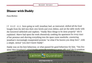 65 – Dinner with Daddy | LG2012 [Go Back] PDF File Type: pdf Categories: 2012 Tags: Short Story Author: Fiona Meehan