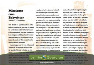 71 – Missioner cum Babysitter | LG2006 [Go Back] PDF File Type: pdf Categories: 2006 Tags: Memories, Missionaries, Religious Life Author: Aodhán Ó Céileachair