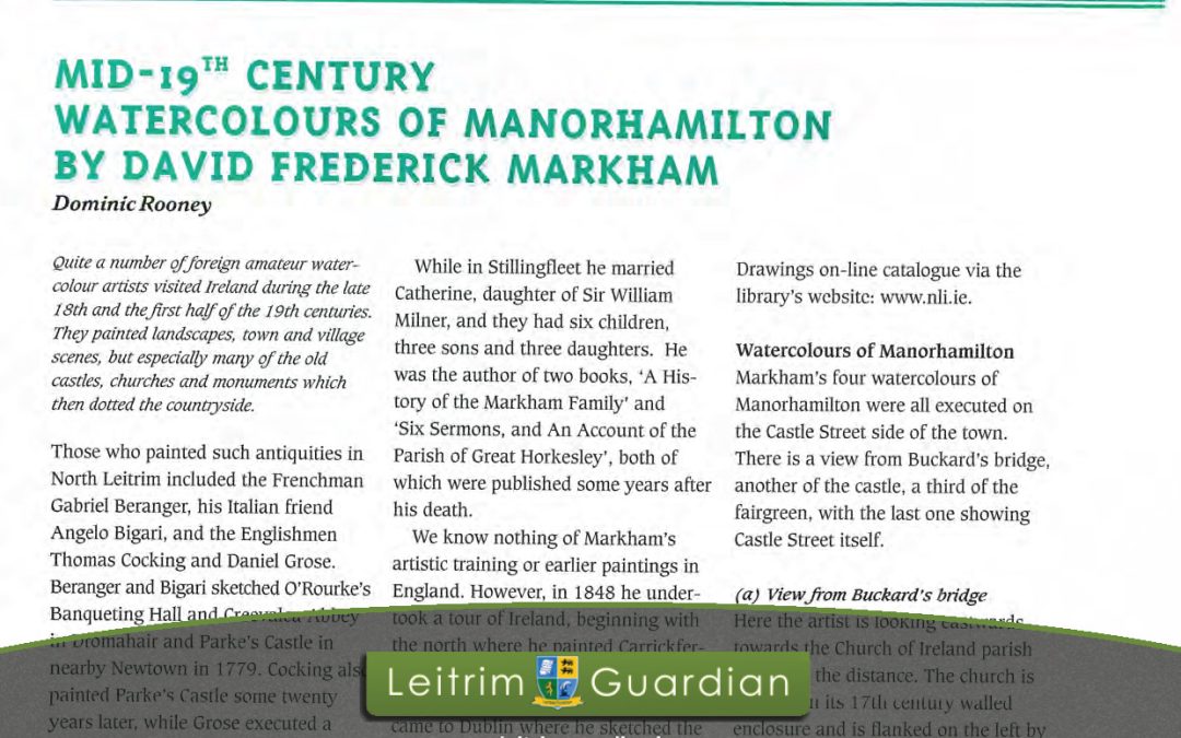 92 – Mid-19th Century Watercolours of Manorhamilton | LG2005 [Go Back] PDF File Type: pdf Categories: 2005 Tags: Art & Music, Culture, Heritage, Local History, Visual Art Author: Dominic Rooney Downloads: 1